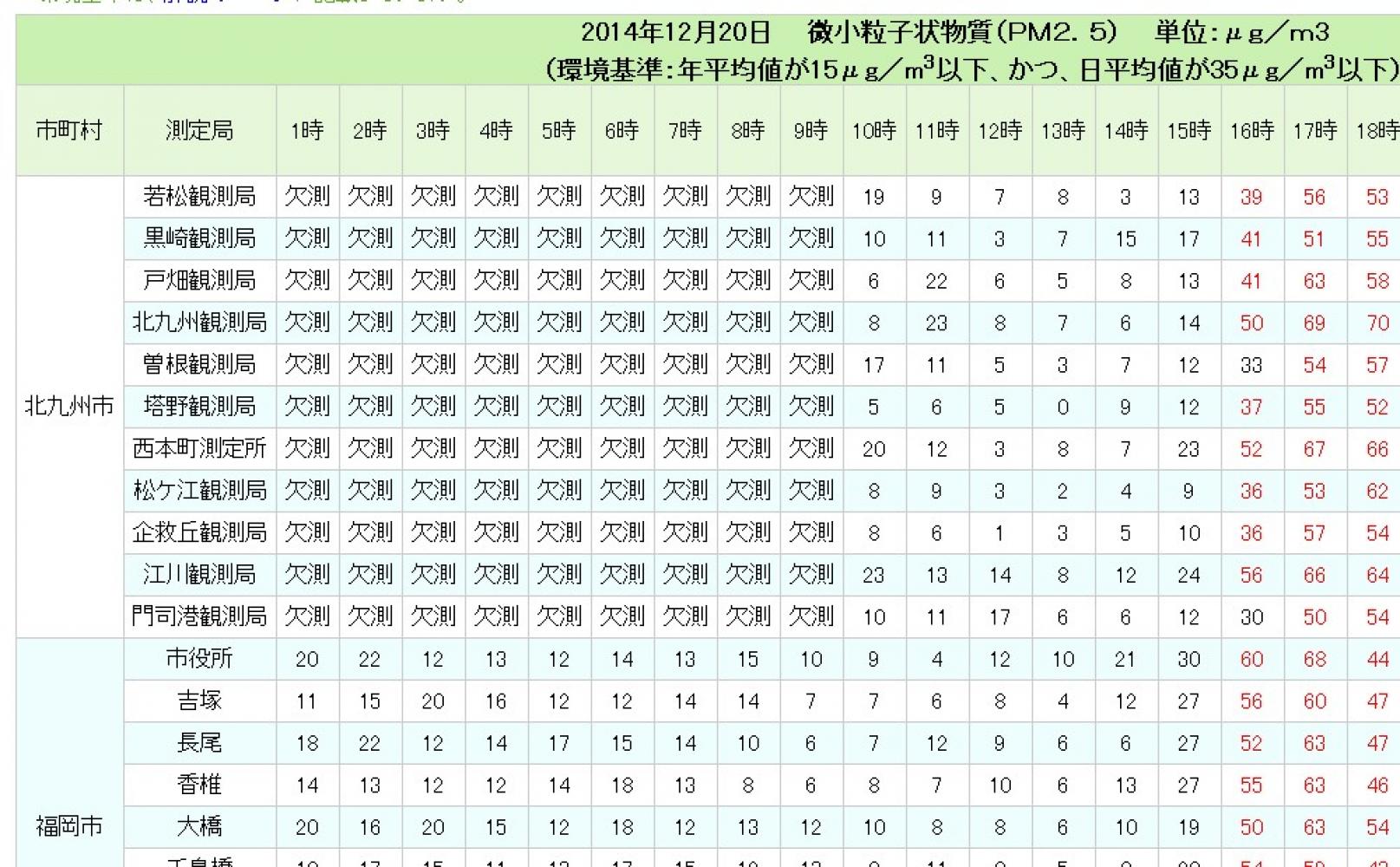 ここ最近、各地で大雪が降り、災害のニュースばかり気になってしまいますが、福岡県が計測しているPM2.5の飛来状況によると、20日夕方に一時68μg/m3に達するなど、時間帯によっては、かなり多くなっているようです。
