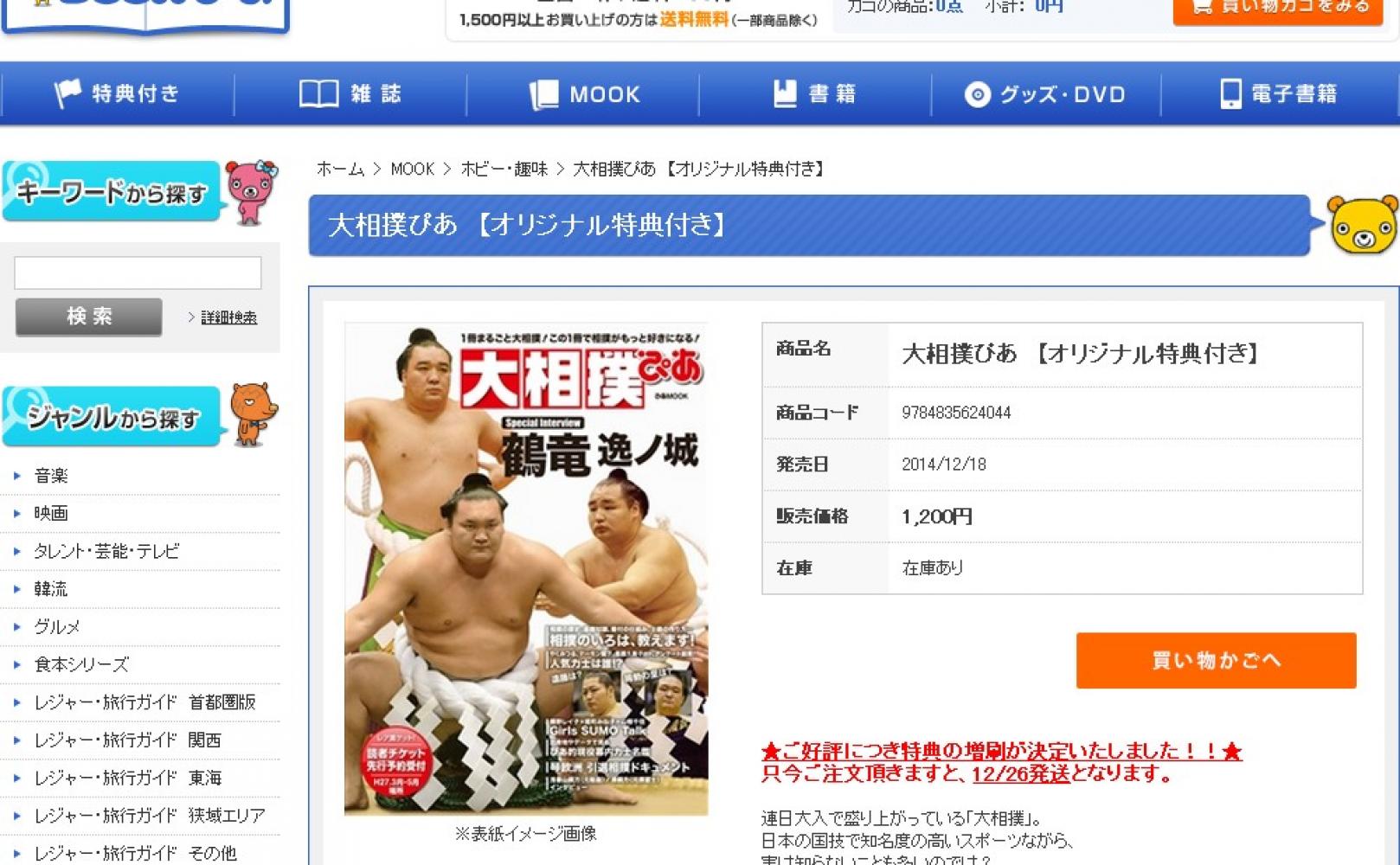 3横綱の台頭や、若いイケメン力士の活躍で、連日大入で盛り上がっている「大相撲」ですが、その人気を証明するかのように、1冊がまるごと大相撲で構成されたムック本の売れ行きが好評だとか。