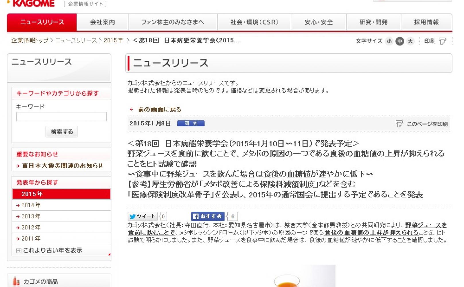 カゴメニュースリリース