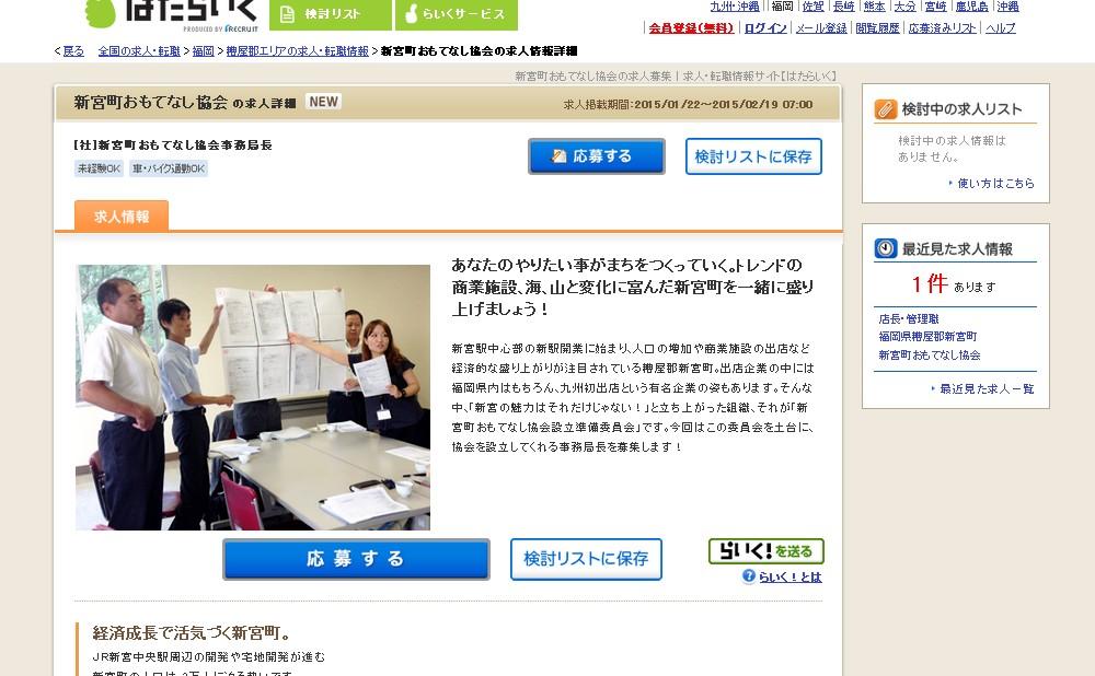 「新宮町おもてなし協会」が事務局長を募集中