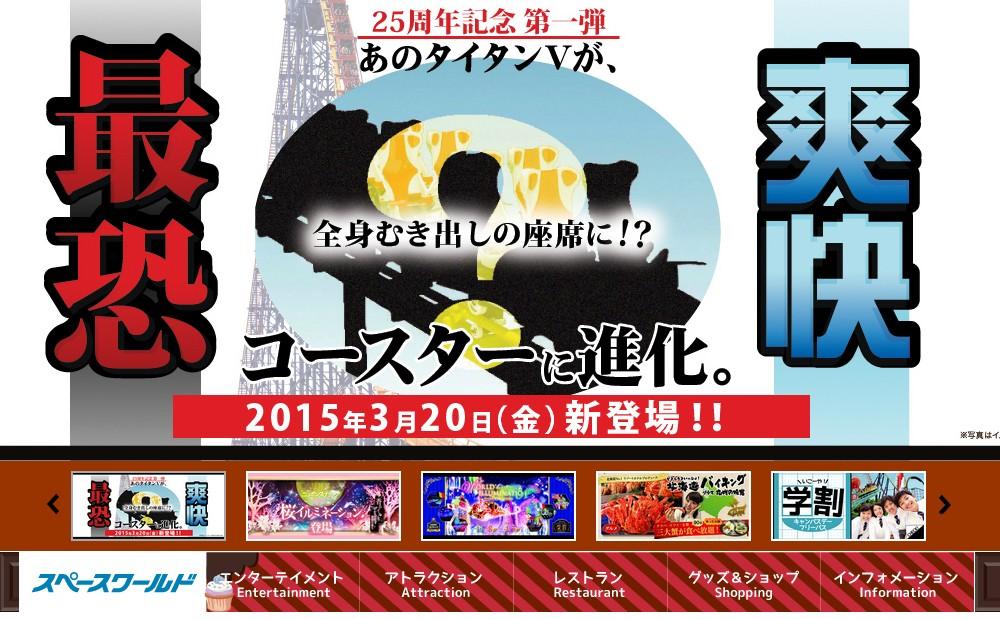 北九州の総合レジャーパーク「スペースワールド」は、開園25周年を記念してこの春から展開する企画「九州初25連発」の第1弾として、スペースワールド人気NO.1アトラクションの「タイタンV」の車輌をフルモデルチェンジし、2015年3月20日(金)に「タイタンMAX」としてリニューアルオープンします。