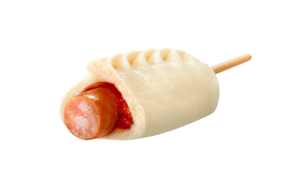 「まるごとフランクまん」は、串つきのフランクフルトをまるごと1本使い、中華まんの生地で包んだ斬新な商品。少し辛味を効かせたトマトソースが飽きのこない仕上がりだそうです。