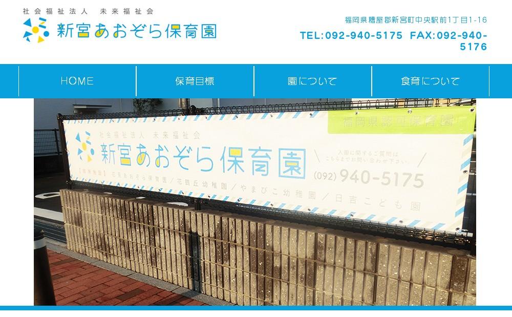 昨年12月に新宮町の認可保育所として新宮町中央駅前1丁目に誕生した「社会福祉法人未来福祉会 新宮あおぞら保育園」がホームページを公開しました。