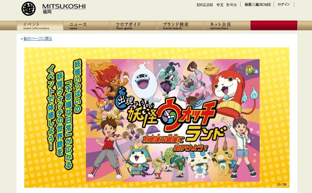 福岡三越では、昨日から妖怪ウォッチの体験型イベント「出現!妖怪ウォッチランド 〜不思議な冒険に出かけよう! 〜」が開催されています。