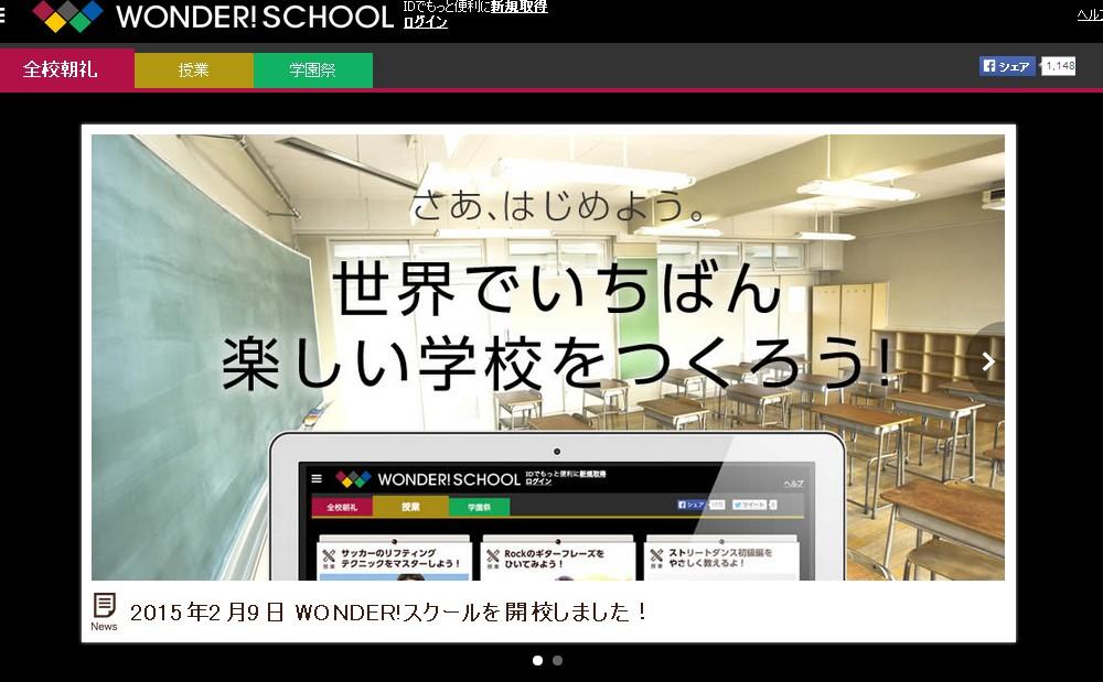 「WONDER!SCHOOL」は、そこで学んだ子どもたちの作品や成果の動画を募集し、その投稿によって、みんなでつくりあげていく参加型学びのサイトで、学びや実践の場となる「授業」、コンテストの場となる「学園祭」、そしてコンテスト受賞者の表彰の場となる「全校朝礼」で構成されています。