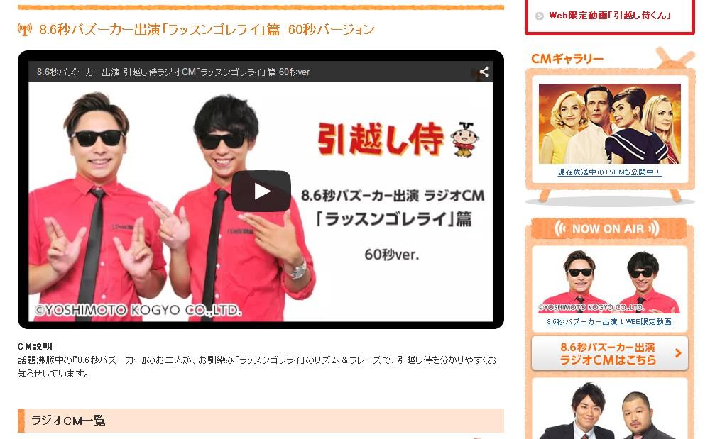 「ラッスンゴレライ」がラジオCMに登場!引越し侍を8.6秒バズーカーが紹介