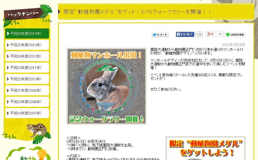 福岡市動物園で、動物のマンホールデザイン完成を記念したウォークラリーが3月15日(日)に開催されます。