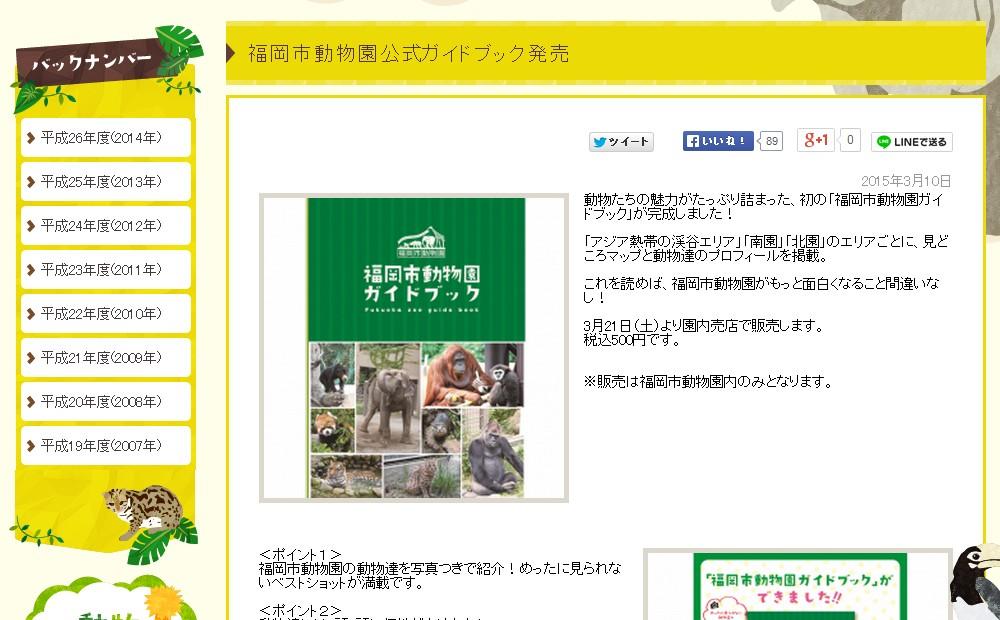 福岡市動物園の動物達を、めったに見られないベストショットの写真つきで紹介しているほか、飼育員だけが知っている動物達1頭1頭に個性や性格、エピソード、豆知識などを詳しく掲載。