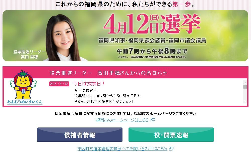 本日4月12日(日)は、統一地方選挙(福岡県知事・福岡県議会議員)の投票日です。