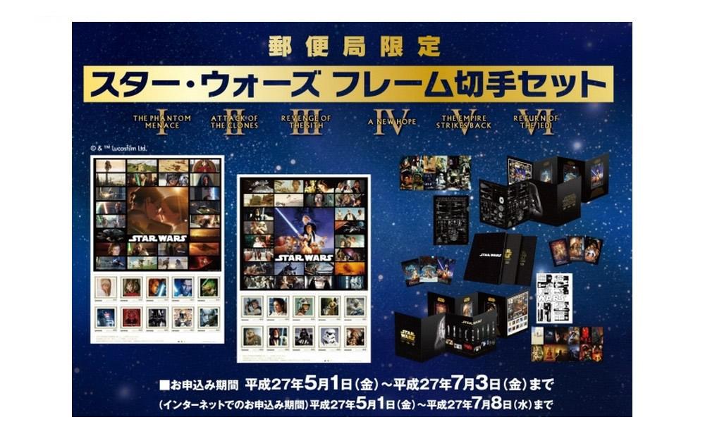 最新作「スター・ウォーズ/フォースの覚醒」の公開に先駆けて、これまでの6作品をふりかえる記念切手セット「スター・ウォーズ フレーム切手セット」が5月1日(金)から全国の郵便局で販売開始されます。