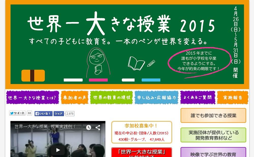 2008年の「世界一大きな授業」は、世界で885万人が参加しギネス記録に登録されており、日本でも2014年には約7万人が参加しました。