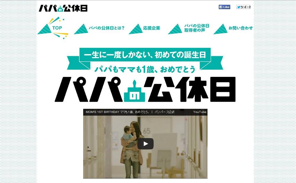 パンパースが発起し、FQ JAPAN、アップリカ・チルドレンプロダクツ、ANA、ダッドウェイ、レカロチャイルドセーフティなどの応援企業と、特別協力団体ファザーリング・ジャパンが、参画するもので、「パパの公休日」として、付与されている年次有給休暇を取得することを積極的に働きかけるとともに、有給休暇の取得実績を社内外に発信することで施策を広げていき、「パパの公休日」、「赤ちゃんとパパ・ママのはじめての誕生日」ということを子育て習慣とするムーブメントを起こすことを目指しているそうです。