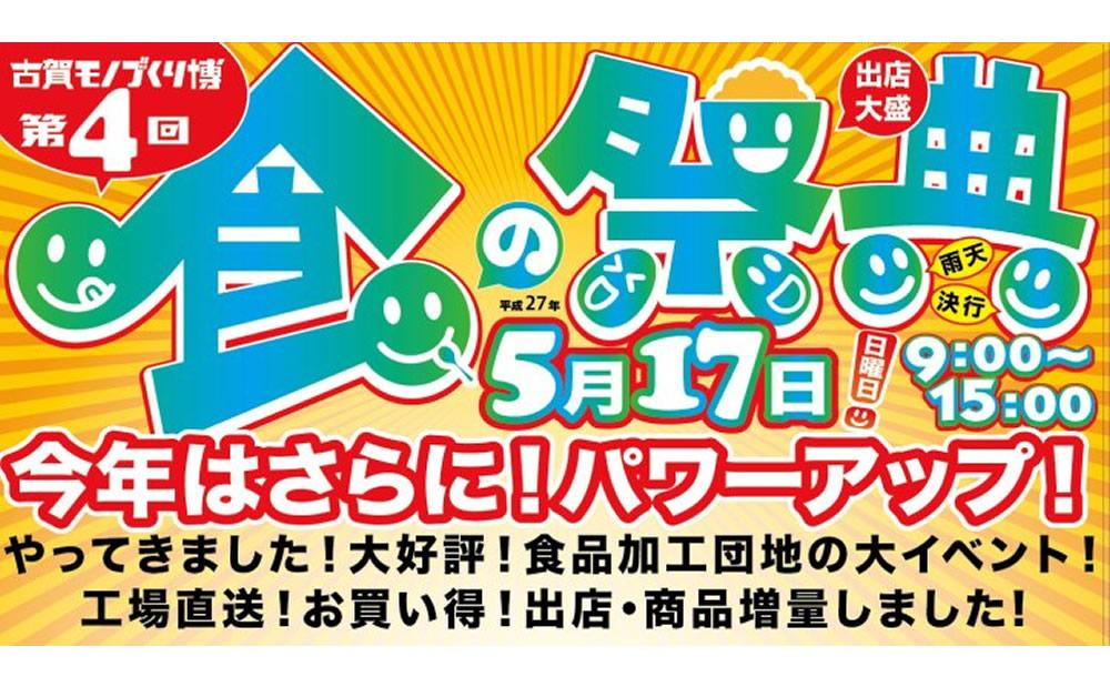 古賀市鹿部の福岡食品加工団地で、「第4回古賀モノづくり博 食の祭典」が5月17日(日)に開催されます。