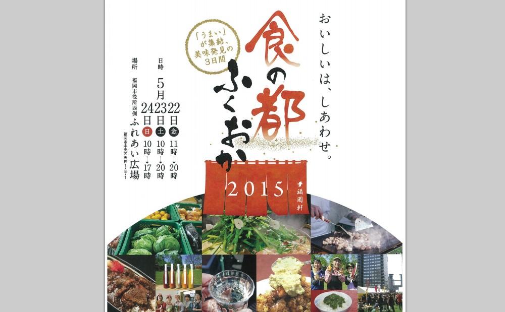 福岡の食が大集合する「食の都ふくおか2015」が5月22日(金)からの3日間、福岡市役所西側ふれあい広場で開催されます。