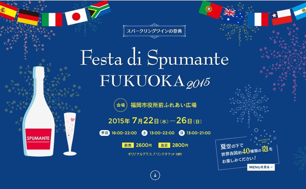 8月1日(土)から、福岡のイベント会場と飲食店でスパークリングワインをグラスで楽しめる街フェス「Festa di Spumante(フェスタ・ディ・スプマンテ) 2015」が開催されます。