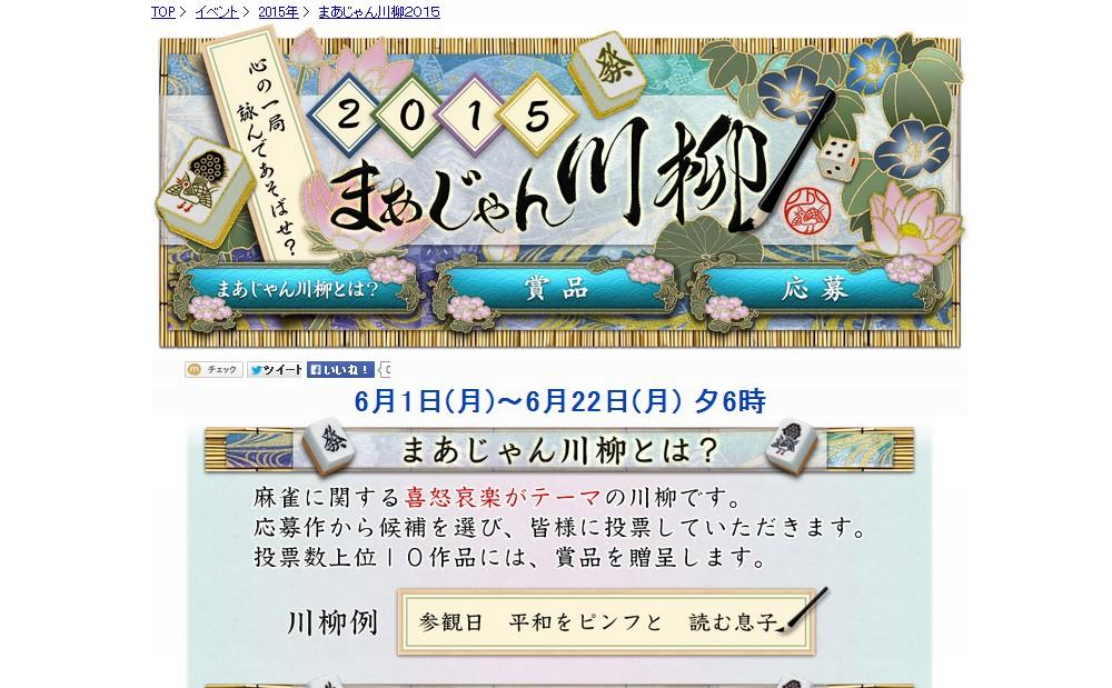 麻雀の喜怒哀楽を綴る「まあじゃん川柳2015」作品募集開始