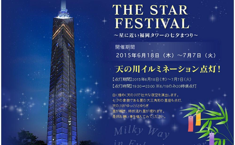 福岡タワーで「THE STAR FESTIVAL ~星に近い福岡タワーの七夕まつり~」が7月4日(土)から7月7日(火)までの4日間で開催されます。