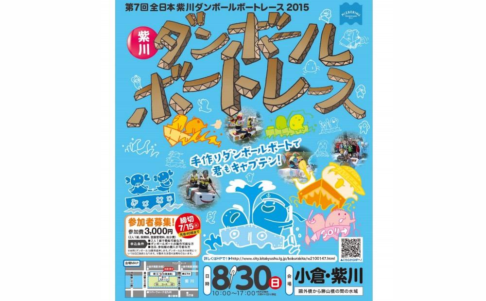 「第7回 全日本紫川ダンボールボートレース2015」は、自分で作ったダンボールボートで出場し、紫川に設置された約200mのコースで、タイムやユーモアなどを競う競技。