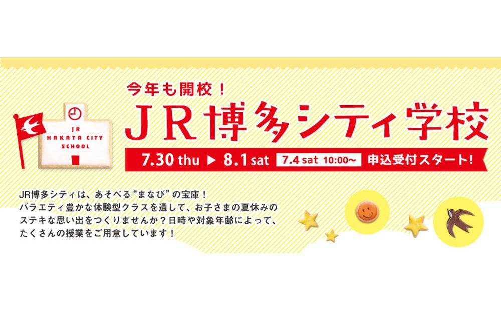 遊びながら学べる「JR博多シティ学校」が、7月30日(木)から8月1日(土)まで、JR博多駅で開校します。