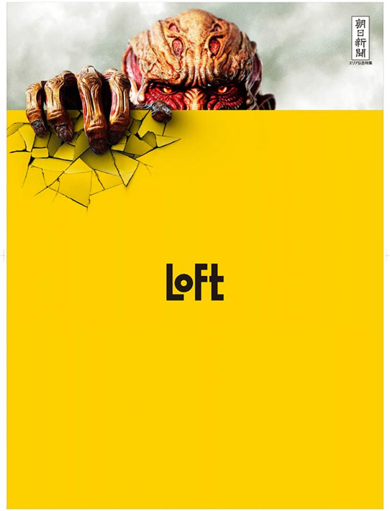この広告は、映画「進撃の巨人」とのタイアップ企画としてロフトで実施中の「進撃の夏ロフト」キャンペーンを掲載した、フルカラー・ブランケット版8ページに相当する「メガ新聞」で、福岡県の一部と、 関西の一部エリアに、合計約22.5万部を朝日新聞朝刊に折り込んで配布されたそうです。