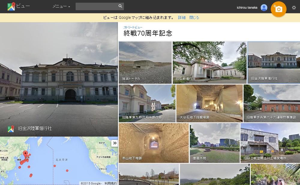 グーグルが終戦70周年記念と題し、ストリートビューで見られる主な戦争関連施設をまとめたページを公開しました。