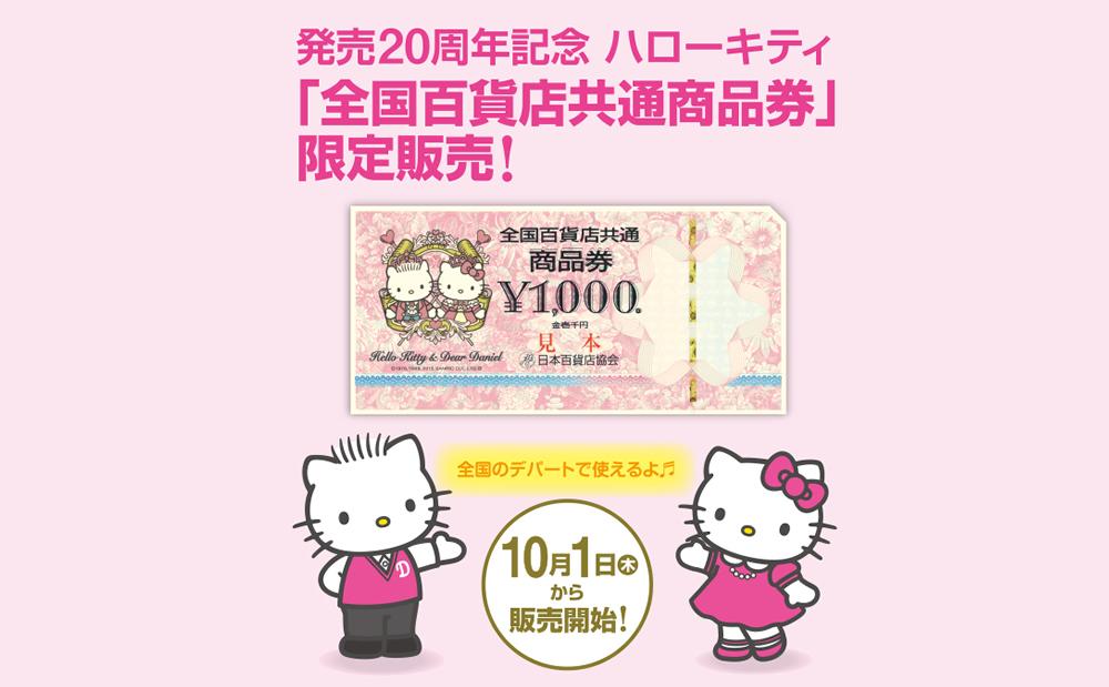 全国百貨店共通商品券発行20周年記念でハローキティデザイン共通券を数量限定発行