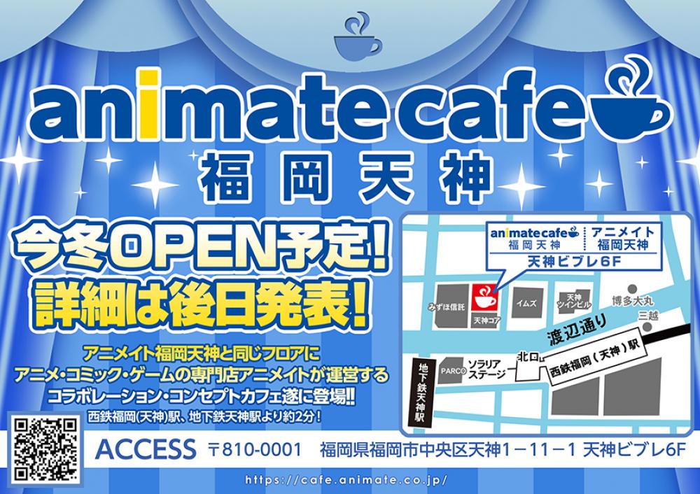 アニメの専門店「アニメイト」が運営するコラボレーション・コンセプトカフェ「アニメイトカフェ福岡天神」が天神ビブレに今冬オープンします。