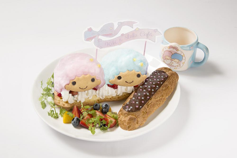 カフェ店内では今年で誕生40周年のサンリオキャラクター「リトルツインスターズ(キキ&ララ)」をモチーフとした、ワクワクして楽しくなるようなオリジナルメニューが勢ぞろい。