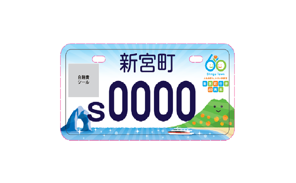 新宮町合併60周年を記念して製作・発行される予定の、原動機付自転車(原付バイク)のオリジナルナンバーのデザインが決定しました。