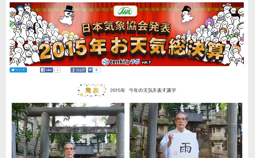 台風災害や、火山活動の活発化などは、記憶に新しいところですね。ちなみに、このページでは、2015年お天気総決算と題して、「2015年今年の天気を表す漢字」や、「2016年の天気に期待すること」なども発表されています。