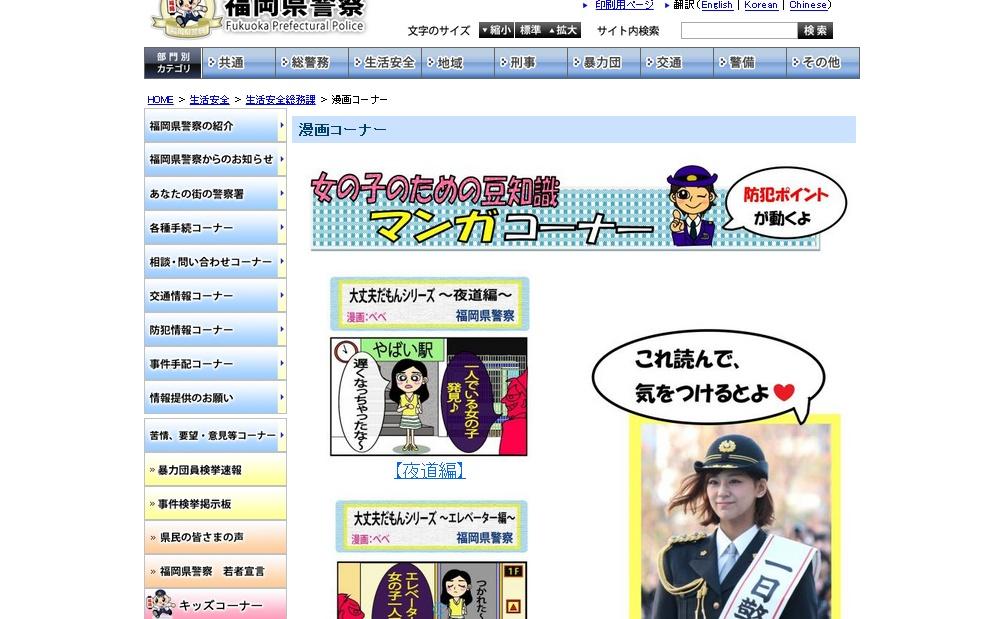 福岡県警がホームページで防犯漫画を公開