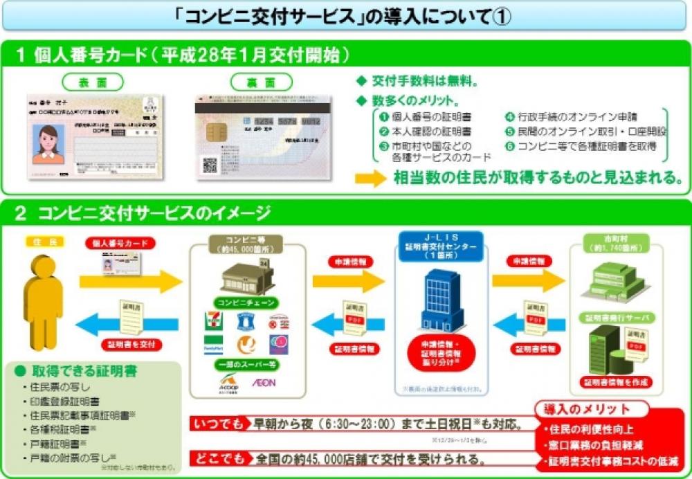新宮町が、「個人番号カード」を使った、コンビニでの証明書交付サービスを、2016年2月から開始します。