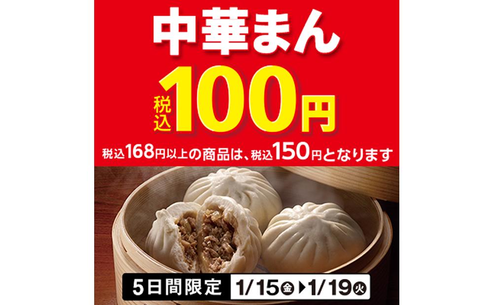 ミニストップが、本日2016年1月15日(金)から5日間限定で、中華まんの100円セールを実施しています。