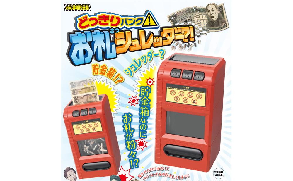 お札が切り刻まれる貯金箱「お札シュレッダー?!どっきりバンク!」登場