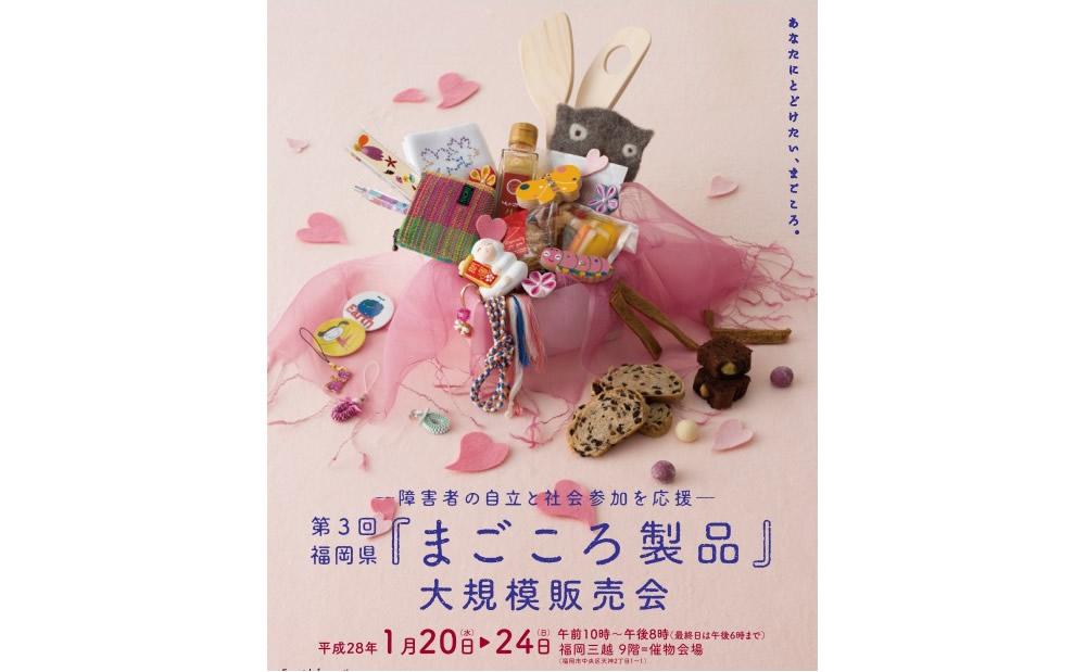 障がい者の自立と社会参加を応援する「第3回福岡県『まごころ製品』大規模販売会」が2016年1月20日(水)から福岡三越9階催物会場で開催中です。