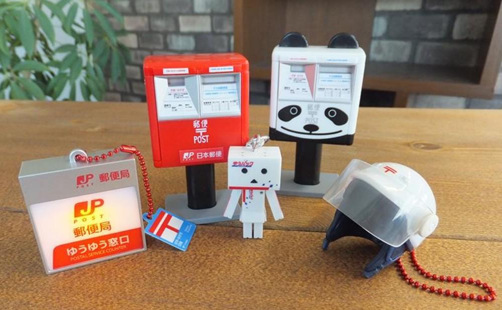「郵便局ガチャコレクション」のラインナップは、「ミニ・郵便ポスト」、「上野動物園ミニ・パンダ郵便ポスト」、「郵便配達員ヘルメットキーホルダー」、「ゆうゆう窓口サイン看板ライトキーホルダー」、そして、2014年7月にゆうパックとのコラボレーションで誕生したゆうパックダンボー・ミニのミニチュアサイズ「ゆうパックダンボーキーホルダー」の5点。
