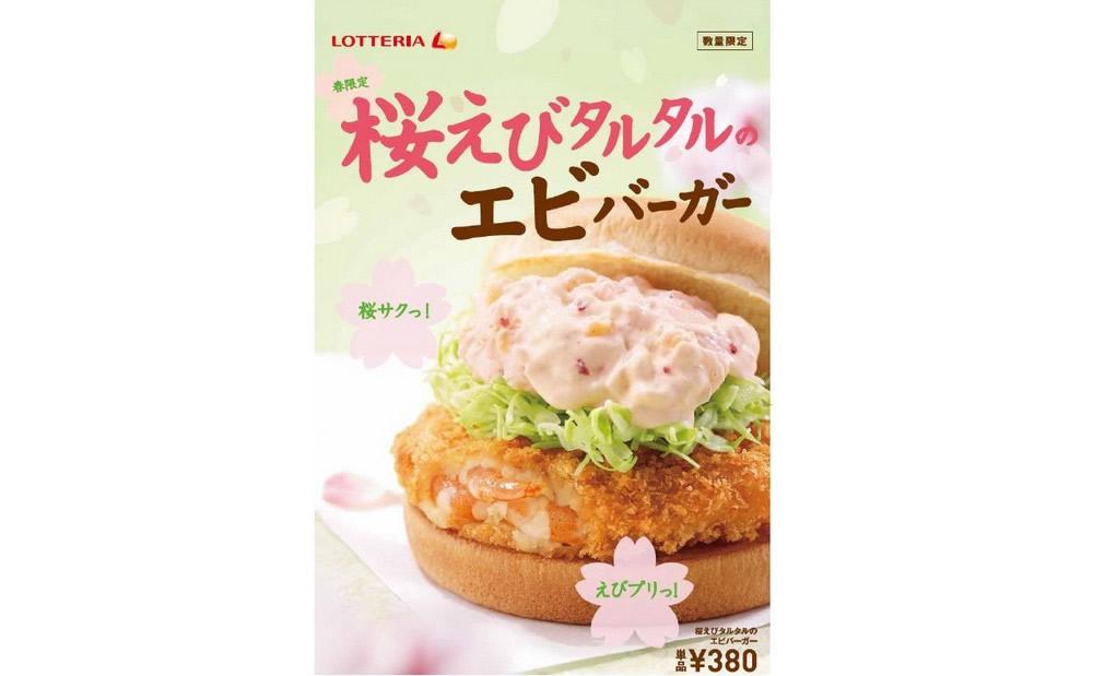 ロッテリアは、「桜えびタルタルのエビバーガー」の発売を記念して、「桜サクッ!キャンペーン」を期間限定で展開、”桜”・”エビ”・”春”にちなんだ商品を店舗に持っていくことで対象商品が100円割引になる「桜えび割」(3月23日まで)と、対象商品購入で桜の花の半券付きの桜サクックーポンがもらえる「桜を咲かせよう!キャンペーン」(4月27日まで)が実施されます。