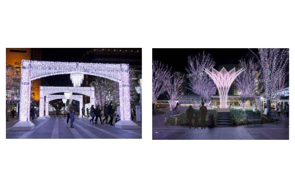 JR博多シティで桜の花見をイメージした「さくらイルミネーション」実施