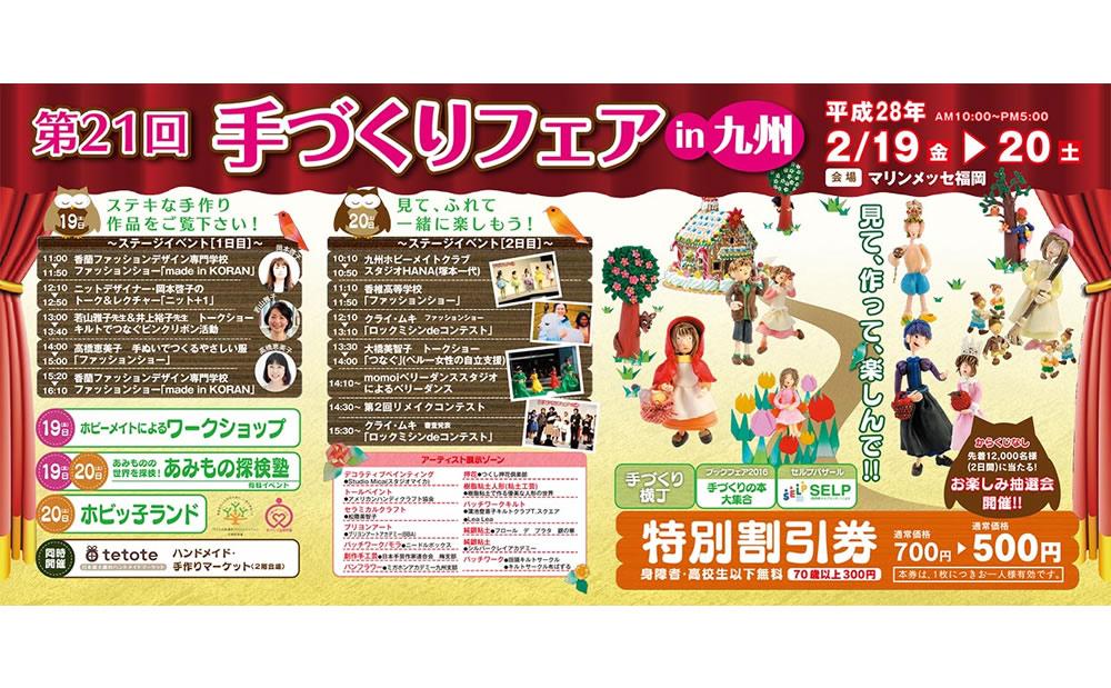 九州最大級の手作りホビーショー「第21回 手づくりフェア in 九州」が2016年2月19日(金)からの3日間、マリンメッセ福岡で開催されます。