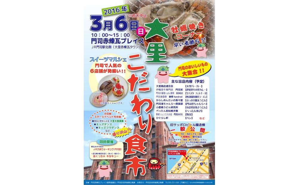 地元の食を楽しむ「大里こだわり食市」が、3月6日(日)、北九州市のJR門司駅北側大里赤煉瓦タウン内にある門司赤煉瓦プレイスで開催されます。
