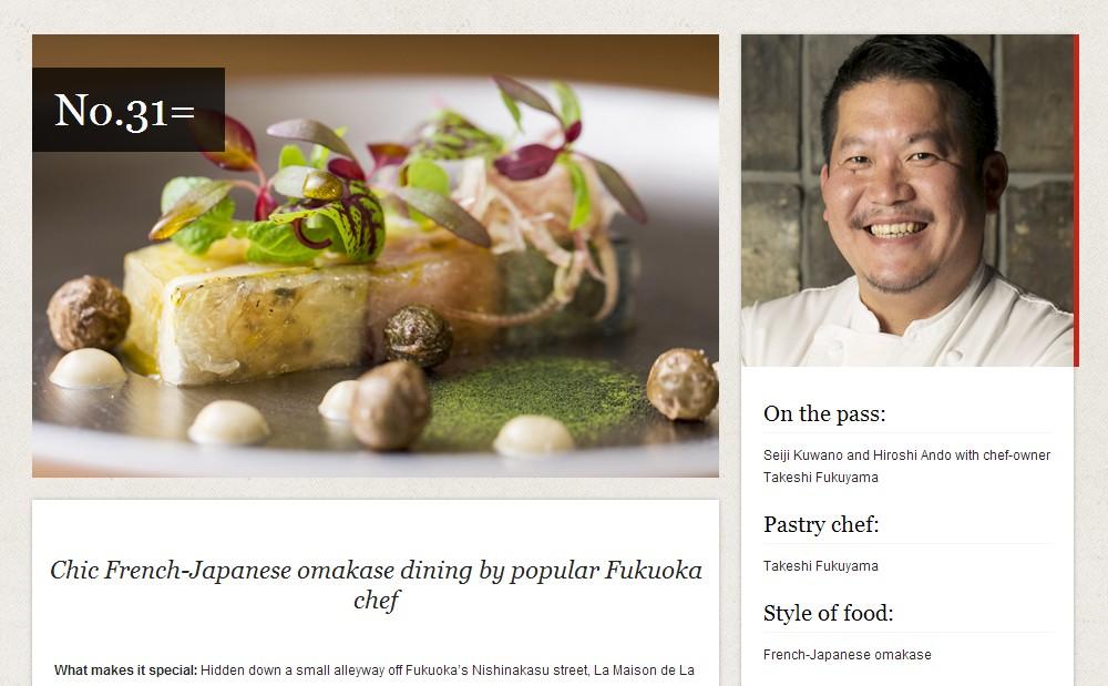 今年のベスト50には、日本から初登場3店を含む10店がランクイン。その中には、福岡から西中洲のフレンチレストラン「ラ メゾン ドゥ ラ ナチュール ゴウ」が31位に選ばれました。