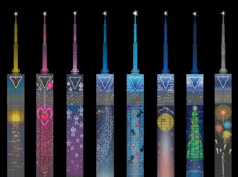 福岡タワーが1年分のイルミネーションを一挙に点灯するのは今回が初めてで、点灯されるイルミネーションは、初日の出、ハート、桜、天の川、金魚、お月見、クリスマス、花火の全8パターンで、30分間ですべてのパターンを点灯する演出が、1日で4回繰り返されます。