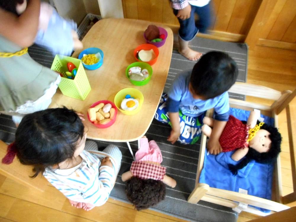 0歳から1歳までのクラスと2歳のクラス、そして、3歳以上の縦割りのクラスが4クラスあります。