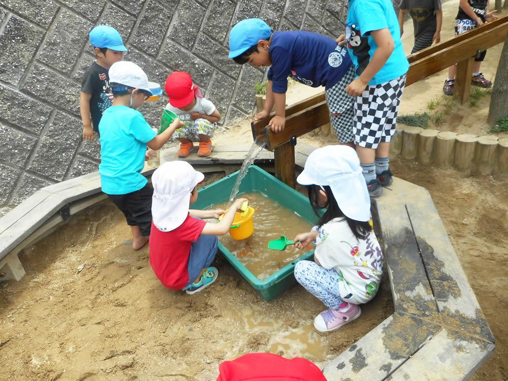 自由な活動の中から、自主性を身に着けることができる、のびのびとしたこどもたちの遊ぶ姿が印象的な保育園です。